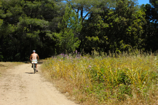 As we picked up our rentals and pedaled furiously up the steepest incline we would encounter all day, I felt a sense of longing for my childhood. When I was young here, the hill seemed harder, the trees taller and mum would have been waving us off from the brief stretch of tarmac that marked the start of our adventure. What the island hadn’t lost though, was its post-card views, and as I approached a sharp bend, the harbour was laid out in front of me through the pine trees; a perfectly framed painting.
