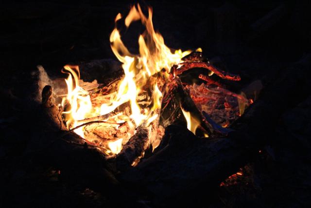 As the light reluctantly gives way, darkness turns the bay into a different world. Long shadows skip across friends’ faces as we cook by the fire, its crackle and pop exaggerated against the silent backdrop. The shoreline is merely a memory of daytime, not visible behind the camp’s protective foliage. All that’s left of the gigantic ocean is the muffled roar of crashing waves.