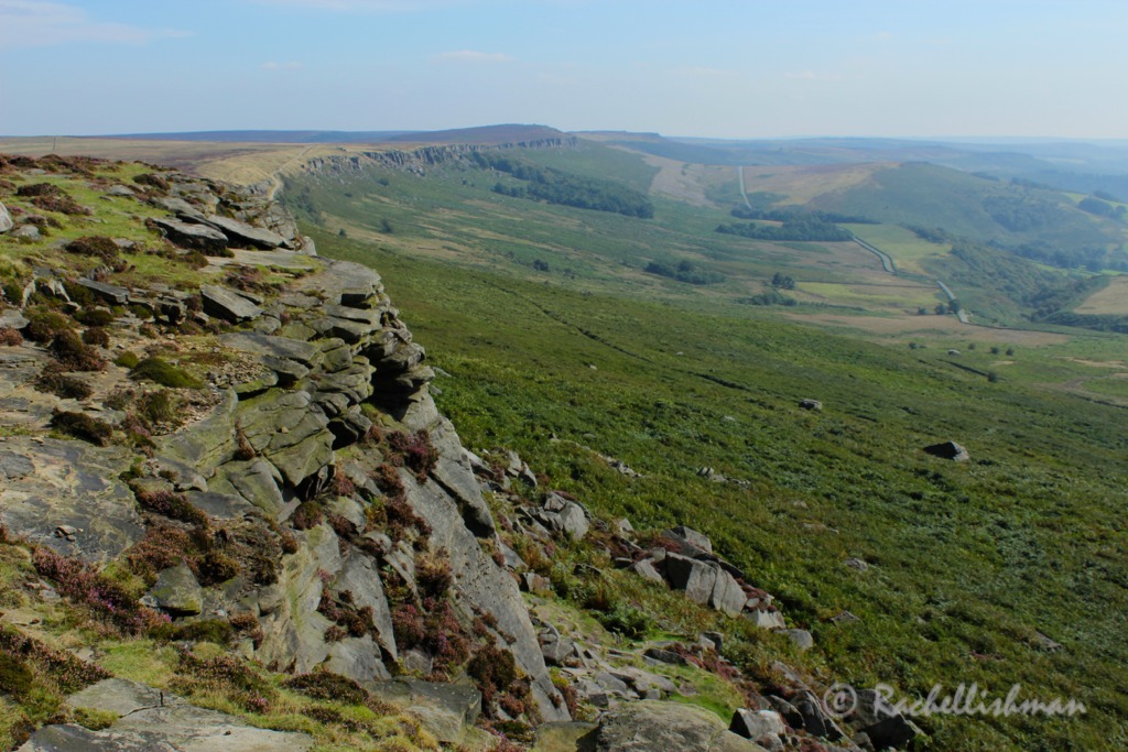 Worth the climb. Stanage Edge gradually winds into Hathersage Valley