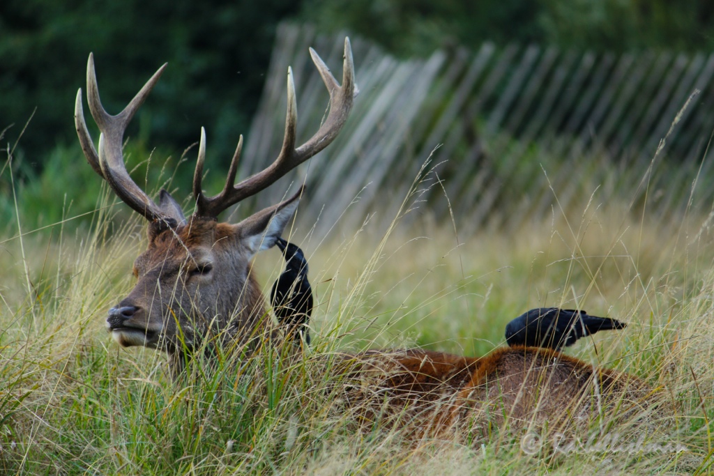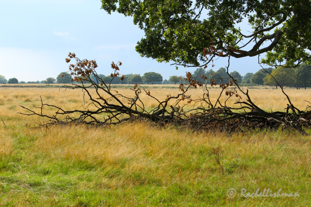 The ‘real’ wildlife, however, was just down the road. In Richmond Park an early autumn light dowsed everything and it was only minutes before I saw deer. I’d planned this as the pinnacle of my walk and it didn’t disappoint. Two stags lounged casually in the long grass, their large ears flicking reactively at flies. A few crows did well to avoid shaking antlers as they diligently pecked their hosts clean.