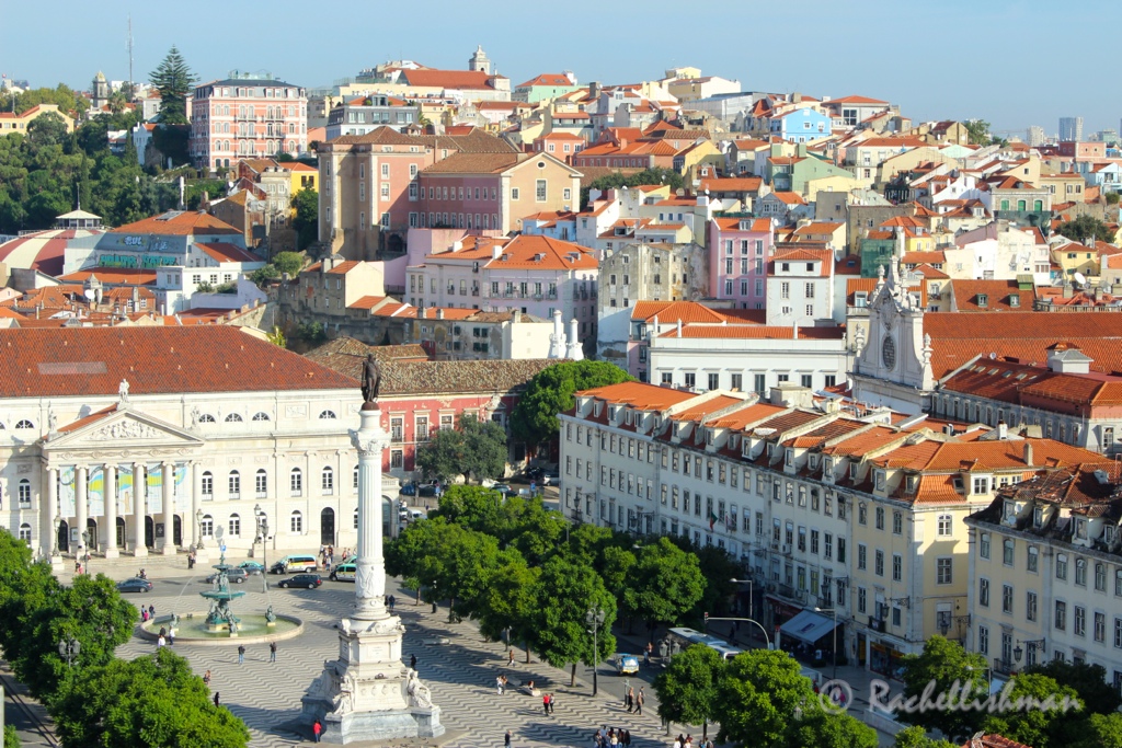 An early morning view of Rossio square from the top of the Elevador de Santa Justa