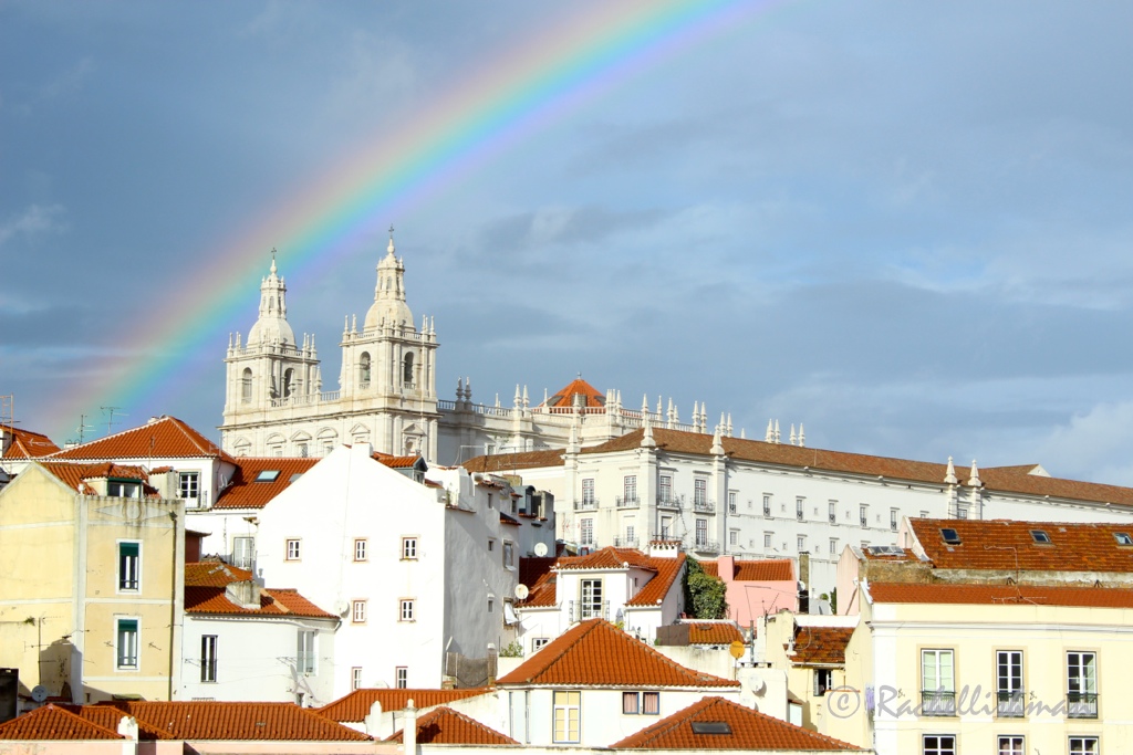 Proof that the sun doesn’t always shine! Storm clouds recede behind a stunning rainbow at one of Alfama’s look-outs.