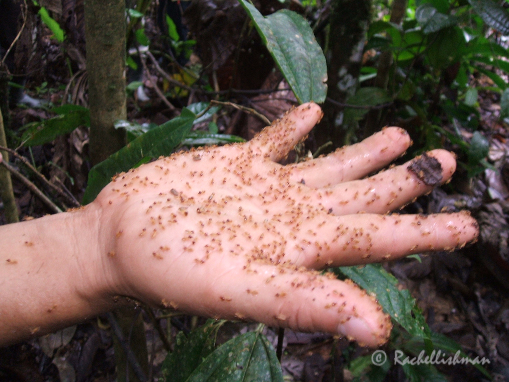 “Stop!” Wingo’s voice interrupted my sensory overload with a sharp warning. His hand aloft, he gestured to pass him quietly and quickly. Snapping a leaf from its stem he began snatching rhythmically at a nearby bush. He frowned realising I’d paused to watch him. “Keep moving! Tropical wasps’ nest!” At exactly 3pm, it rained. Not the lack-luster Welsh drizzle I was accustomed to, but heavy raindrops that bulleted through the thick canopy and drenched everything below. The clay soil belched under my weight as I trudged into camp.