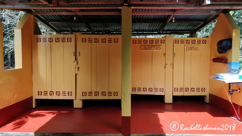 I enjoyed using my hands but my mind felt redundant. So, in a moment of inspiration taken from a recent visit to the Maya ruins of Tikal, I decided to re-create the Maya world in an outdoor bathroom. Using the cardboard back of calendars to make stencils, our motley crew gave a new lease of life to the little outhouse in the trees. Perhaps not an accurate ode to local heritage but at the very least a cheery design.
