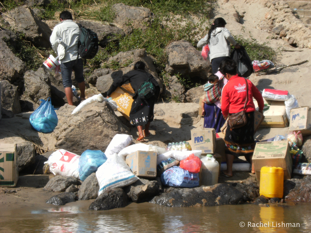 Not at anything that denoted a dwelling, just rocky outcrops that signalled arrival for families and their many boxes. How were they possibly going to carry everything to their destinations? As we left them, determined expressions crossed their faces and moments later they had gone. Sucked into the dense foliage of the rolling hills like toes disappearing into wet sand.